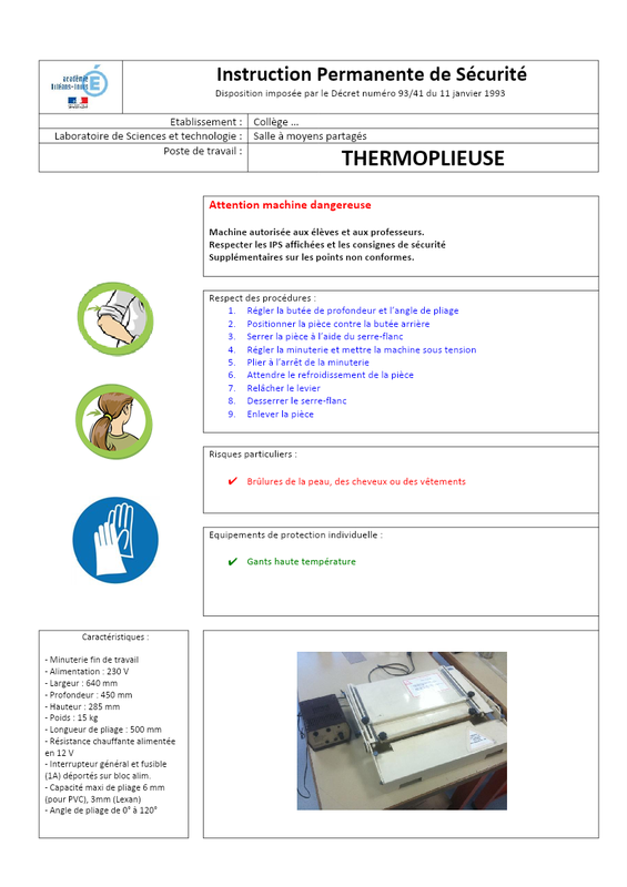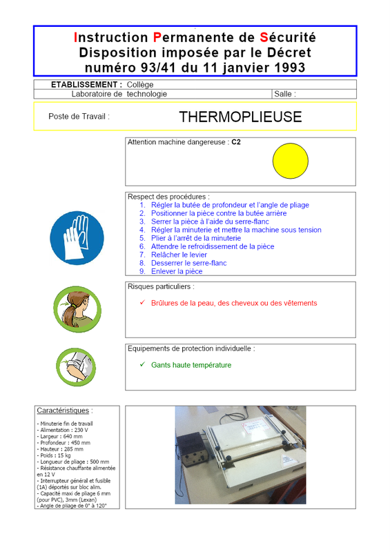 Fiche Sécurité Thermoplieuse Pli500
