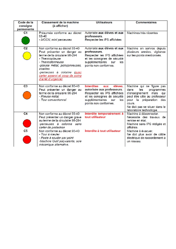Codes Dangerosité Machines
