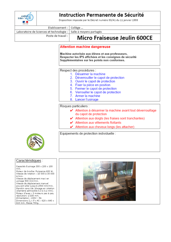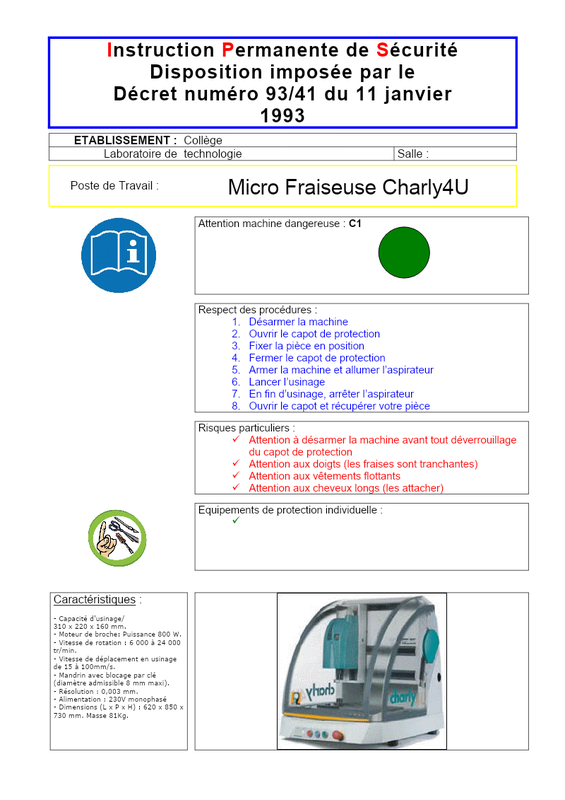 Fiche Securite Microfraiseuse Charly4U