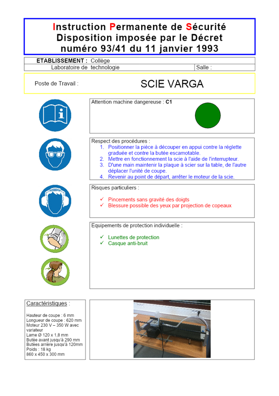 Fiche Sécurité Scie Varga