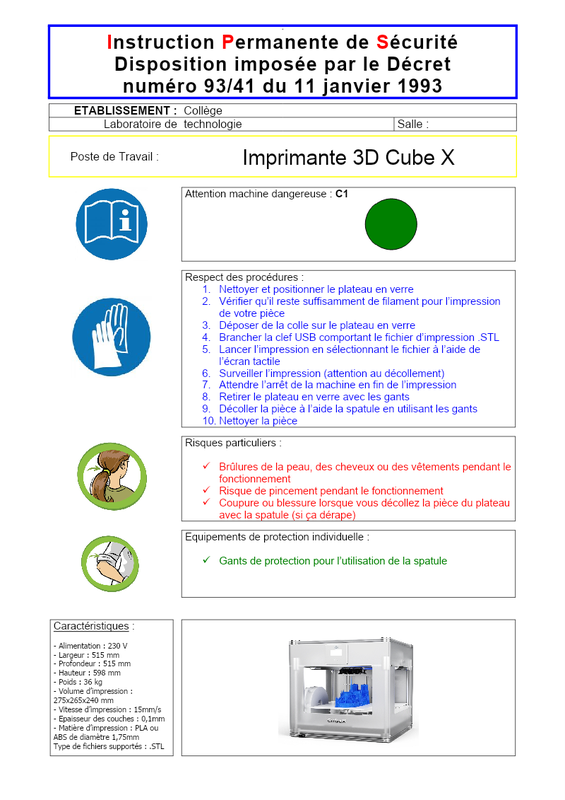 Fiche Sécurité Imprimante3D Cubex