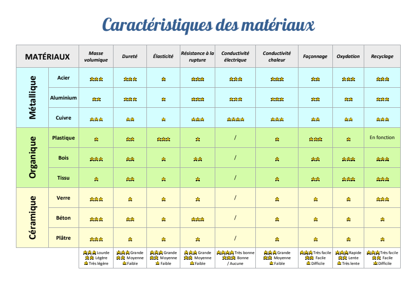 Caracteristiques Materiaux